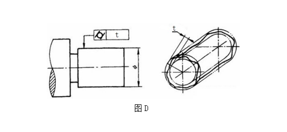 圓柱度定義:公差帶是半徑差為公差值t的兩個(gè)同軸圓柱面之間的區(qū)域。如圖D