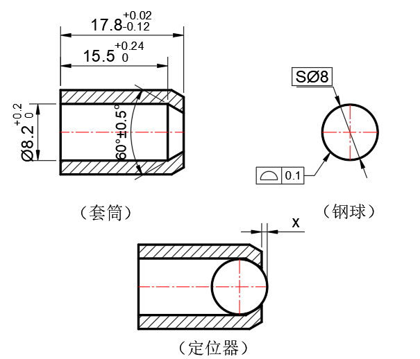 這是一個定位器的案例,定位器由套筒和鋼球兩個零件組成,這個案例主要是計(jì)算鋼球露出套筒端面的距離X。