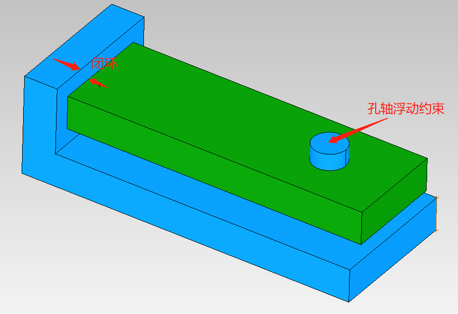 在軟件里面設(shè)置閉環(huán)并添加裝配約束——“孔軸浮動約束”,直接建模計算。